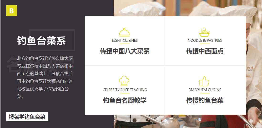 北方钓鱼台烹饪学校是由北方教育集团和钓鱼台国宾馆联合创办,学校是一所以培养高端烹饪人才为目的的教育培训基地,是中国烹饪教育行业的优秀品牌,隶属于北京中职北方教育科技有限公司。